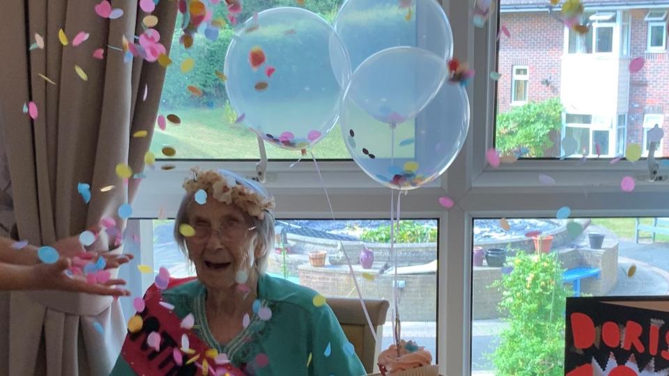 Doris celebrates her 102nd birthday with cakes at The Meadows