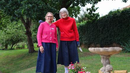 Avid resident gardener, Sue (centre) pictured with Alex, Home Manager in Lake House gardens