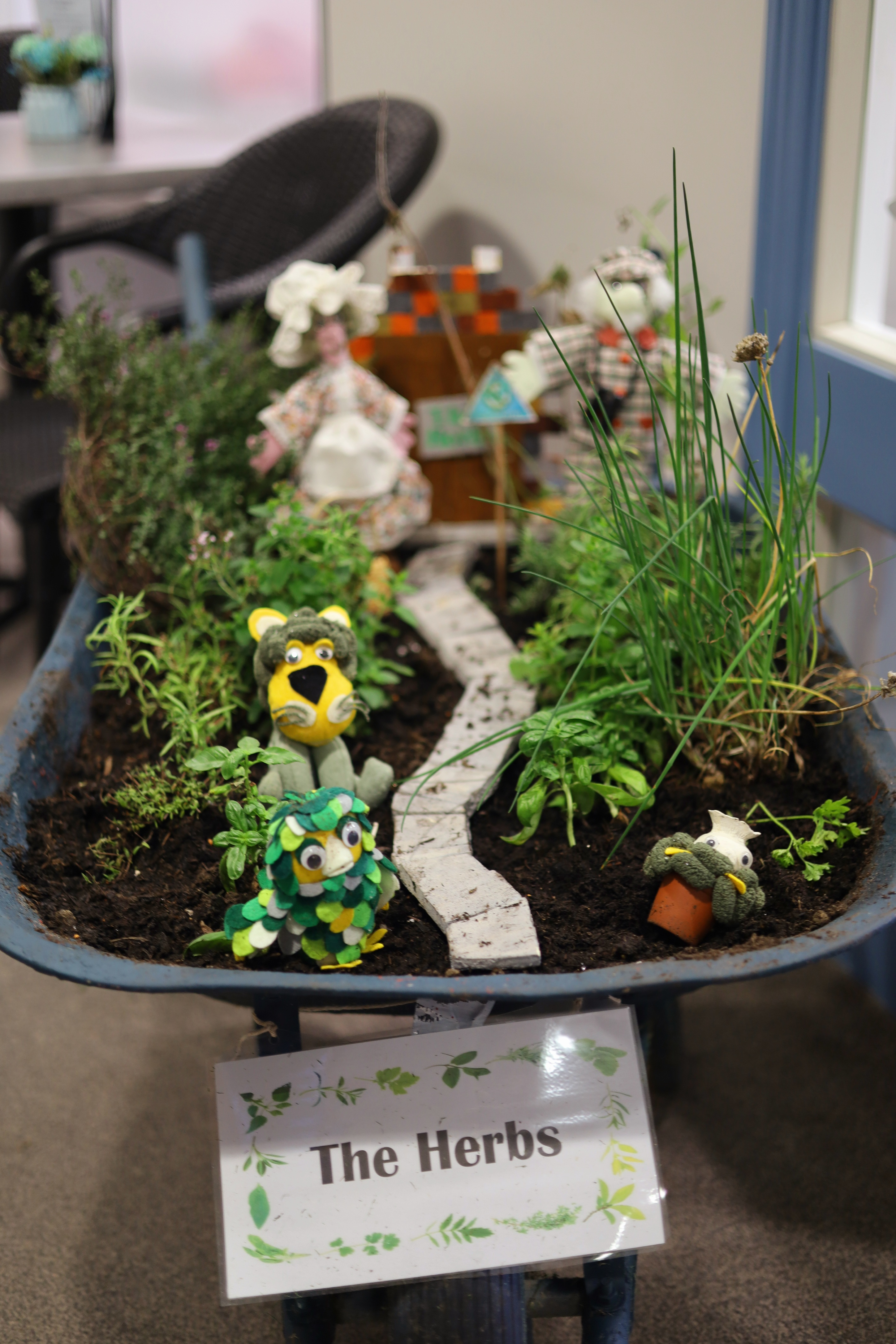 - Herb filled wheelbarrow miniature garden