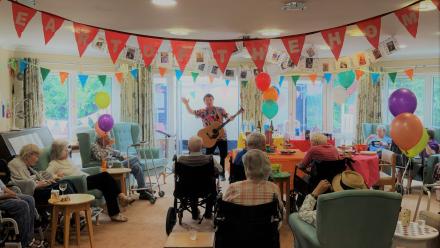 Entertainer Cody was pleased to return to the home, having been a frequent visitor before the pandemic. He entertained party goers with a medley of classics and took requests from residents. Everyone enjoyed singing along and many joined in with dancing.