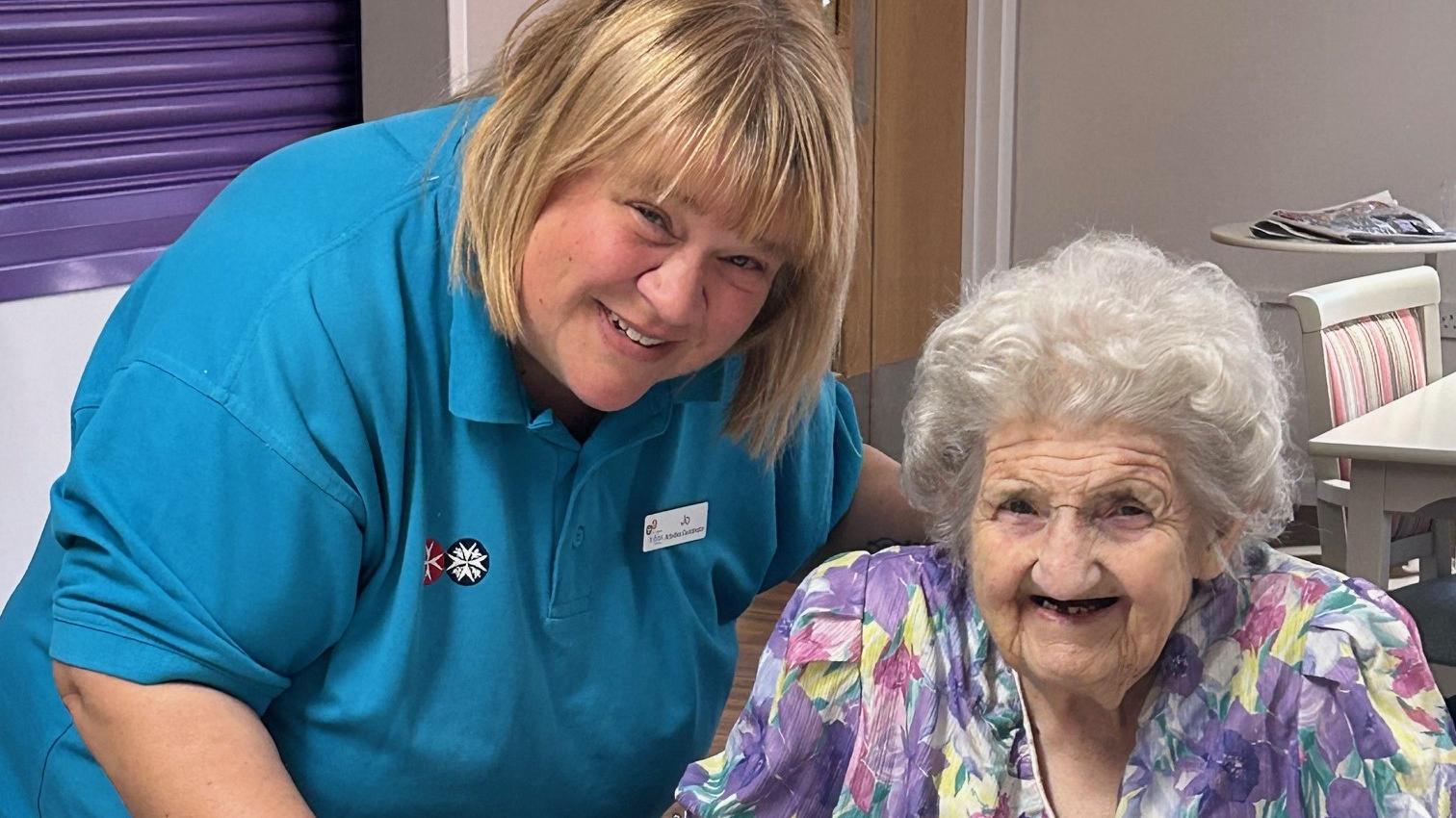 Day centre opens 20 May, Taster Week 20 - 24 May. Photo: Joanna Dixon, Activities Co-ordinator with resident Dorothy.