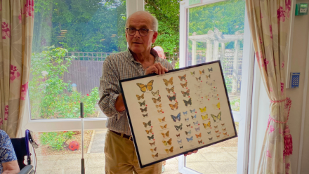 After a quick break for some delicious tea and cake, it was over to Richard, who delighted us all with his talk on butterflies and moths and how we can attract more of these essential pollinators into our own gardens. He even brought some stunning live specimens from his farm in the Cotswolds for the residents to admire, which proved a particularly exciting part of the afternoon, as one of them, the privet hawk moth, is Britain’s largest moth.