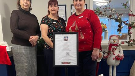 Photo caption: Langford View team members with a selection of donated items, (left to right) Farida Ait-Tales, Home Manager, Trisha Thomas, Bursar, Emma Cottle, Admin Assistant.