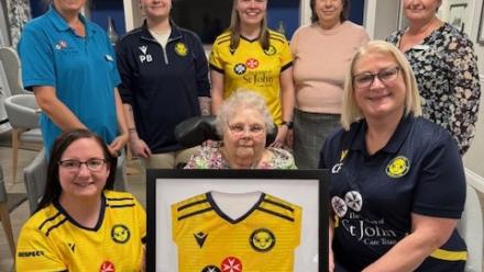 Footballers from Launton Ladies visited residents and team members at Langford View care home to present a framed football shirt for their 2024/25 and 2025/26 seasons. The care home in Bicester is sponsoring the local team as part of a partnership to promote intergenerational connections between the two organisations.