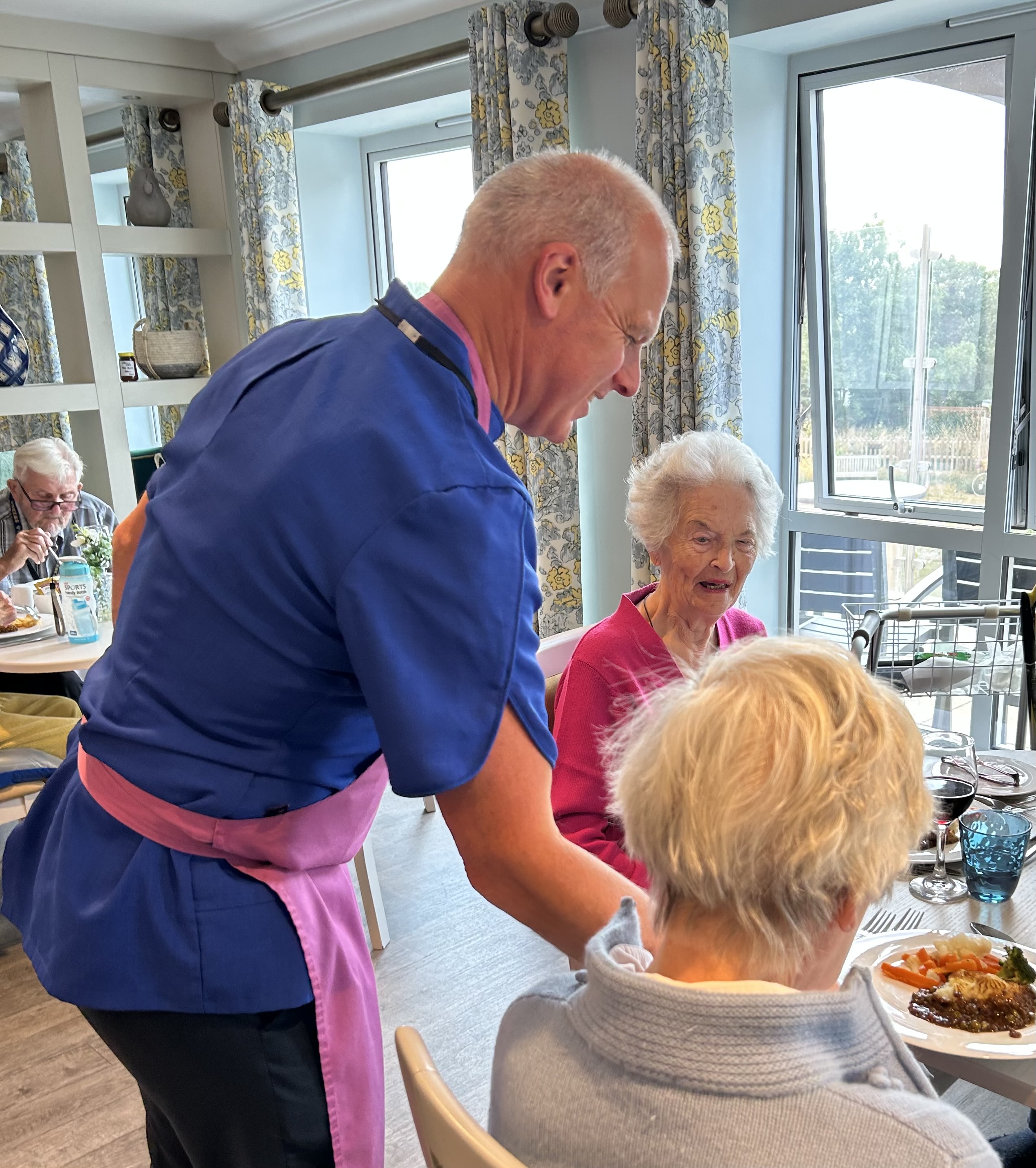 Despite the busy schedule, Mike made time for spending quality time with residents. He called this: “the best part of working in a home, moments filled with joy and connection”. This included chatting over a meal of fish and chips, and enjoying the sounds of the live jazz band performing in the home.