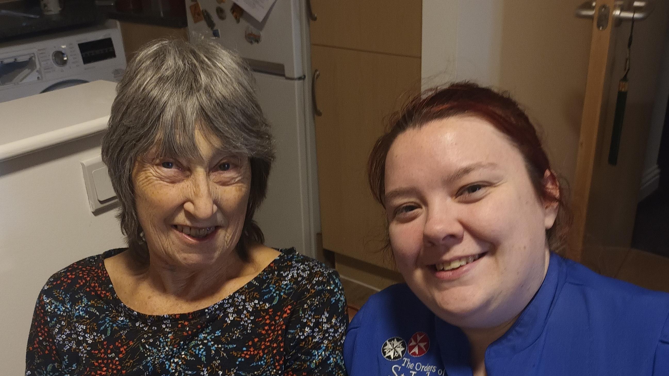 Ann (left) with Domiciliary Carer Jodie at Florence Court