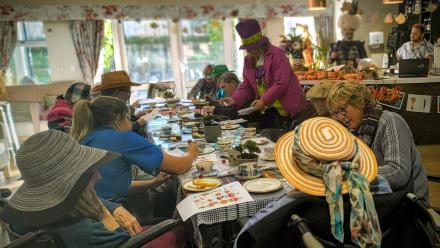 The Orders of St John Care Trust is delighted to announce a special World Book Day celebration, centred on collaborative short‑storytelling between residents. At Grace Care Centre, residents have been exploring Lewis Carroll’s classic Alice in Wonderland through a vibrant, inclusive Mad Hatter’s Tea Party where, with the help of Drag Queen After Shock and members of family and care staff, residents crafted a wonderful story full of imagination and heart.