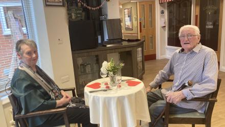 Sylvia and Eric Robinson enjoying a Valentine's meal at Apple Trees together during his stay at the home.