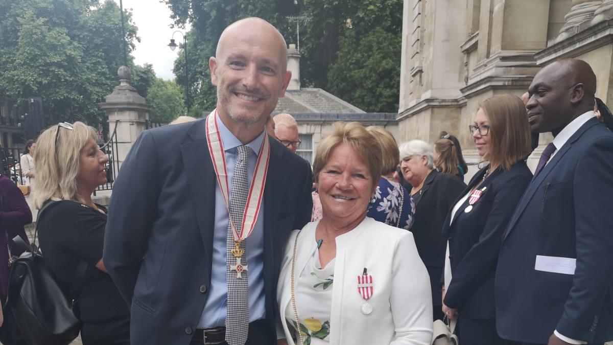CEO Dan Hayes recipient of the Commander of Merit with Jo Tustin recipient of a Covid-19 Campaign Medal