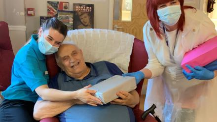 Photo caption: (left to right) Activities Coordinator, Megan, with resident Mick and Linda from Oxfordshire Crossroads.