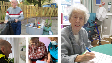 Kath who has been at Whitefriars for six years would like to be a Resident Volunteer Housekeeper. Eighty-seven-year-old Kath enjoys helping around the home, she has had a cleaning basket for the last two years which she uses to help out with easy cleaning tasks. Kath said: “I worked as a cleaner when my children started school and have always enjoyed keeping my home neat and tidy. Whitefriars is happy home and I get on with the staff, I love it when we have sing songs.”